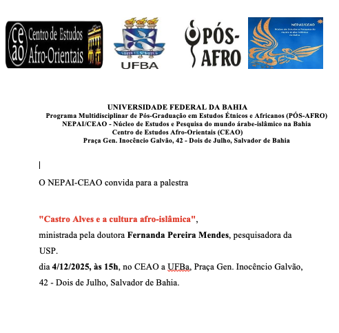 UNIVERSIDADE FEDERAL DA BAHIA Núcleo de Estudos e Pesquisa do mundo árabe-islâmico na Bahia (NEPAI) Centro de Estudos Afro-Orientais (CEAO) […]