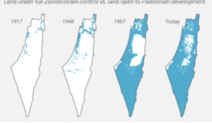 During and since its foundation in 1948, Israel has set out to control as much of the land of historic Palestine as possible and drive as many of the indigenous Palestinian population from the land as it can. Israel’s oppression of Palestinians involves settler colonialism: Zionism seeks to establish a distinct new society, take over control of land and resources and forcibly remove Palestinians.